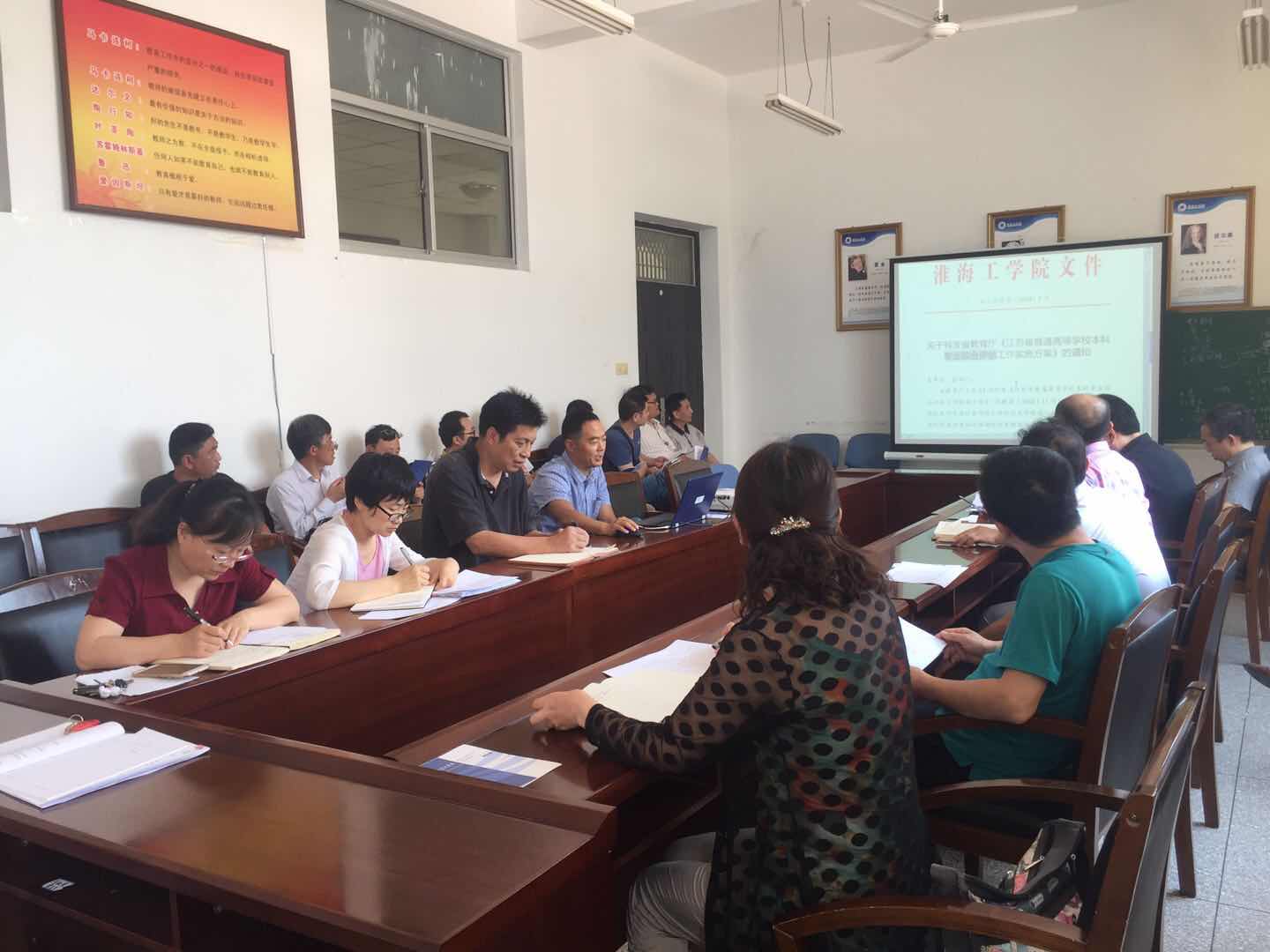 会议分两个议程进行。一由院长王经卓解读淮工院教质〔2018〕5号(关于转发省教育厅《江苏省普通高等学校本科专业综合评估工作实施方案》的通知),二由王经卓公布与地方企业合作的六个项目,并就招聘项目负责人事项作了说明。
