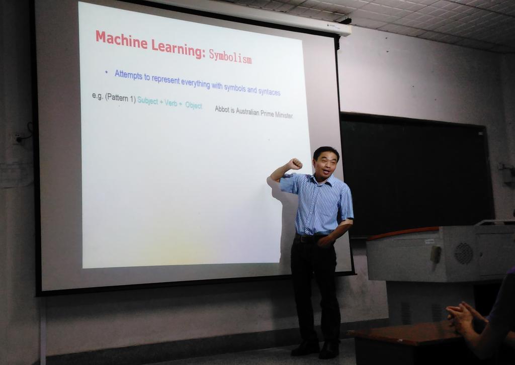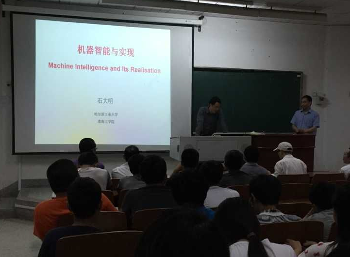 2015年7月1日晚19点,电子工程学院柔性引进教师石大明博士在N202教室为我院师生作了题为“机器智能与实现”的学术报告。报告会由电子工程学院院长王经卓教授主持,电子工程学院相关专业师生近100人参加了报告会。